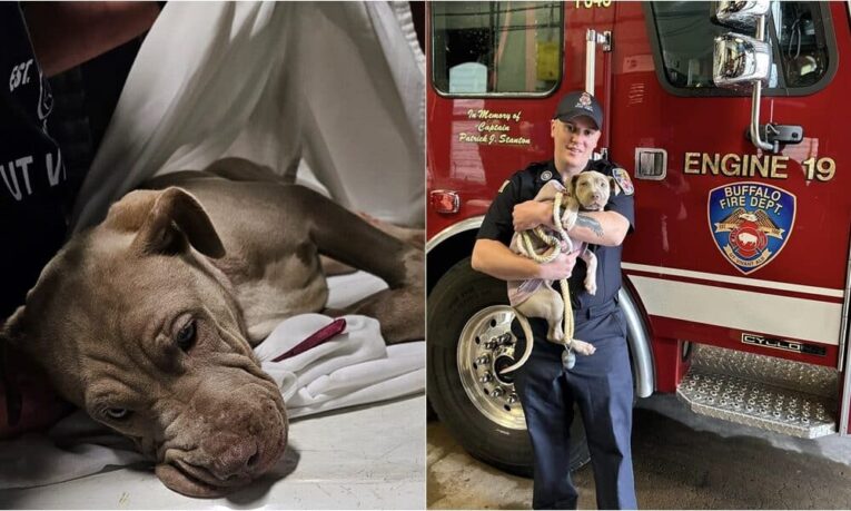 A dog who lost her leg due to a car accident found her forever home in one of the New York firefighters…