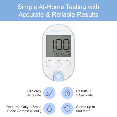 OHC GluNEO Pet Blood Glucose Monitoring System for Cats and Dogs – Accurate & Easy Testing Complete Set – Includes Wireless Meter, Lancing Device, 25 Test Strips, 25 Lancets, Soft Case