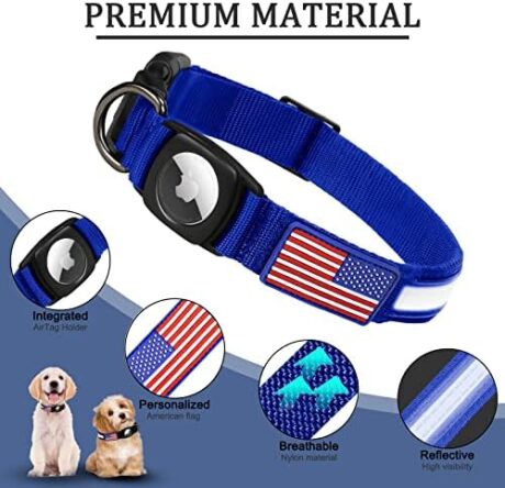 Reflective AirTag Dog Collar, FEEYAR Waterproof Air Tag Dog Collar [Blue], Integrated Apple AirTag Holder Dog Collars with Flag Patch, GPS Tracker Dog Collar for Small Medium Large Dogs [Size L]