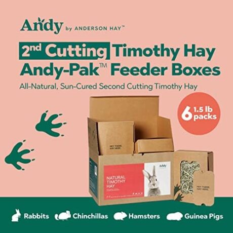 Andy 2nd Cut Timothy Hay Andy-Pak Feeder Boxes, 6 Pack of 1.5 Lb Boxes, Premium Rabbit Food Hay for Rabbits, Chinchillas, and Guinea Pigs
