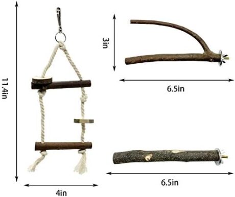 EBaokuup Bird Parrot Perch Set – 10PCS Natural Wood Parakeet Stand, Fork, Rod, Paw Grinding Stick for Budgies, Cockatiels, Conure, Lovebirds