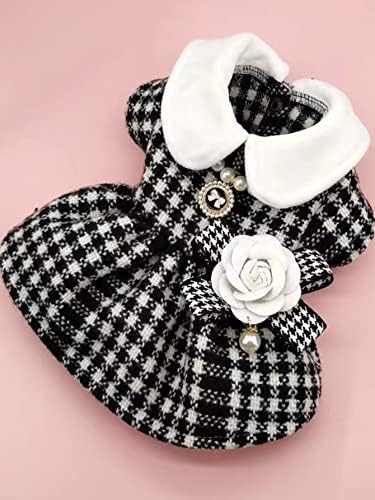QWINEE 3pcs Dog Dress & Flower Bow & Necklace Set Geometric Princess Dress with Flower Bow Deco Puppy Skirt with Pearls Jewelry Necklace for Small Medium Cats Dogs Kitten Black and White M