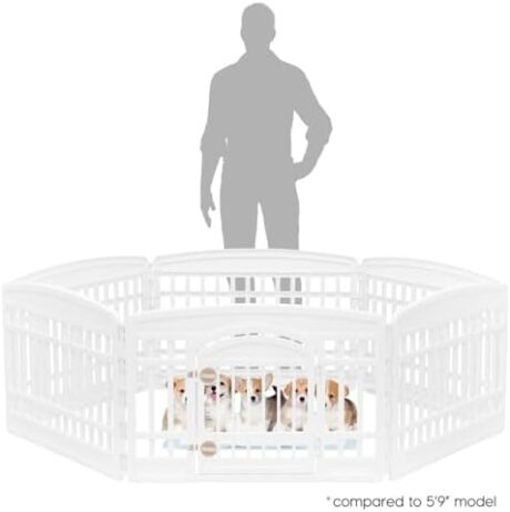 IRIS USA 24″ 6-Panel Dog Playpen with Door, 61 x 61 x 24, Puppy Playpen, Dog Play Pen Indoors, Pet Fence, Puppies/Small Dogs, White