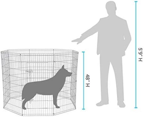 IRIS USA 34″ 8-Panel Pet Dog Puppy Playpen with Door, For Medium and Large Dogs, Keep Pets Secure, Easy Assemble, Fold It Down, Easy Storing, Customizable, Black