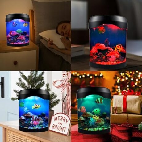 Fake Fish Lamp, Nightly Lifelike Desk Electric Mood Light, LED Light Tank with 6 Color Changing and (5 Fake Fish) Mini Aquarium for Home Office Deco Adults,Gifts for Kids and Adults
