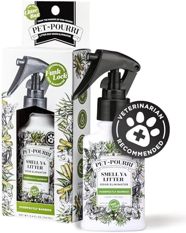 Pet-Pourri Smell Ya Litter Cat Litter Deodorizer Spray, Purrfectly Bamboo 3.4 Fl Oz, Up to 170 Uses, Pet Odor Remover with Essential Oils for Air, Carpet, Urine, Vet Recommended, Bergamot Bamboo Scent