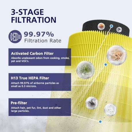 Core Mini Replacement Filter for LEVOIT Core Mini Air Purifier,Core Mini-P,3-in-1 Pet Care High Efficiency H13 HEPA Filter, Mini-RF Filter with Activated Carbon,Replace Part #Core Mini-RF,Yellow