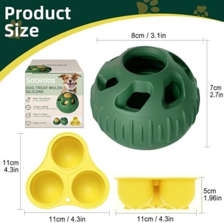 2pcs Dog Chew Toys with Silicone Tray Mold,Frozen Dog Food Snack Balls,Dog Treat Molds Silicone,Freezable Fillable Rubber Dog Toys,Green Balls and Yellow Molds
