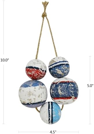 K KILIPES Rustic Wood Fishing Float Hanging Ornaments Beach Wall Decor Decorative Rope Balls Fishing Buoy Coastal Wall Sculpture Nautical Wall Art Decoration for Home Bathroom Living Room Bedroom