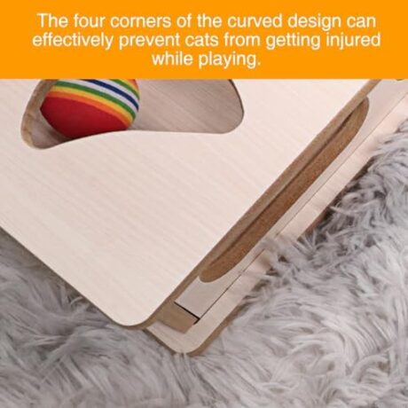 Cat Interactive Box Puzzle Toy with 3 Small Balls and 1 Bell Indoor Hunting Exercise Toy for Kittens Natural Wood Material