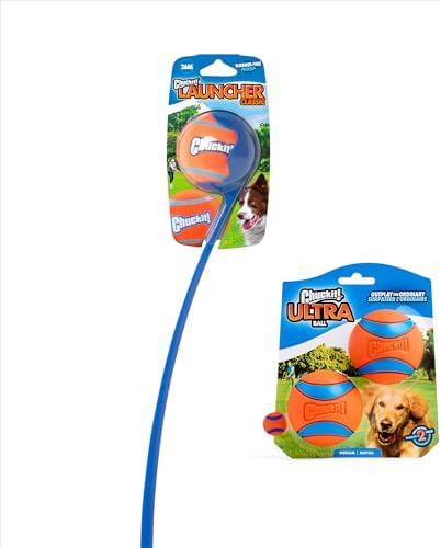Chuckit! Ultra Ball & Launcher Bundle – Classic 26″ with 2 Pack Medium (2.5″) Bouncy Fetch Balls for Dogs 20-60 lbs, Dog Fetch Ball Thrower