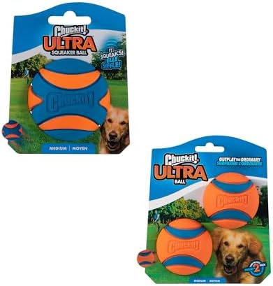 Chuckit! Ultra & Squeaker Ball Dog Toy – Medium Bouncy Fetch Balls for Dogs 20-60 lbs – Made from Durable Rubber – Floating Water Pet Toys – Size Medium – 2.5-inch Diameter – Pack of 3