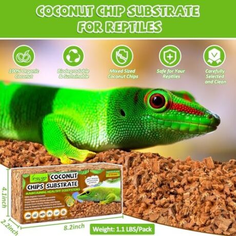 Legigo 4 Pack Coconut Chip Substrate for Reptiles, Natural Coco Husk Chip Reptiles Bedding, Compressed Coconut Chip Substrate for Snake, Tortoise, Ball Python, Gecko, Lizard Terrarium Tanks