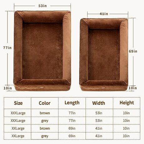 WNPETHOME Orthopedic Dog Beds for Large Dogs, Waterproof Memory Foam Large Dog Bed with Sides, Non-Slip Bottom and Egg-Crate Foam Big Pet Couch Bed with Washable Removable Cover, Grey