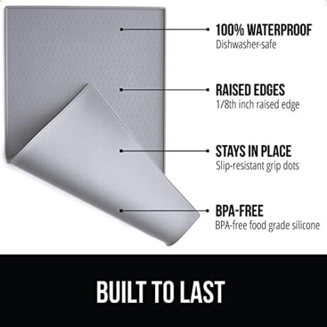 GORILLA GRIP 100% Waterproof Raised Edge BPA Free Silicone Pet Feeding Mat, Dog Cat Food Mats Contain Spills Protects Floors, Placemats for Cats and Dogs Water Bowl, Pets Accessories 18.5×11.5 Gray