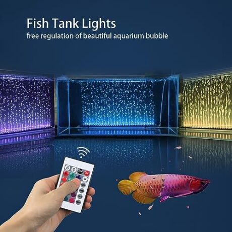 9.05 inch Submersible Aquarium Light, Fish Tank Light with Air Bubble Hole, RGB Color Changing Brightness Adjustable IP68 Waterproof Remote Control LED Light for Aquarium Fish Tank