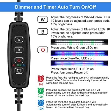 VARMHUS Submersible LED Aquarium Light,Fish Tank Light with Timer Auto On/Off Dimming Function,3 Light Modes Dimmable&4-Color LED,10 Brightness Levels Optional&3 Levels of timed Loop 18LEDS-11.5”
