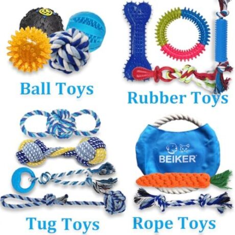 Beiker Dog Teething Chew Toys – 15 Pack Small Medium Breed Puppy Toy, Variety Dogs Rope Chew Toys Bundle for Boredom, Pet Interactive Squeaky Treat Dispensing Ball for Puppies