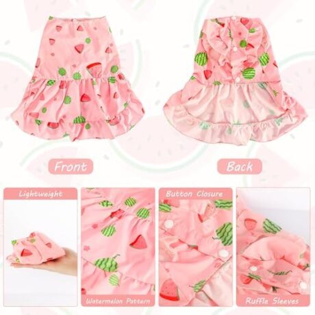 Dog Dress Pink S M L XL, Kanemc Girl Dog Birthday Cat Dress Female Puppy Dogs Clothes Cute Dresses Button Dressing for Small Pup Pets Decor (Medium Size)