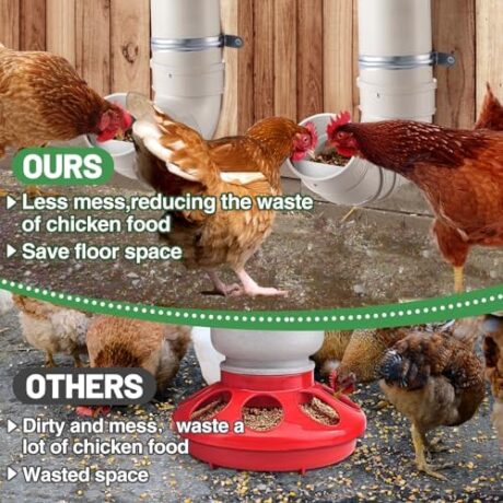 2 Set Automatic Chicken Feeder No Waste – 13 Pounds Large Capacity Heavy Duty PVC Pipe Hanging Chicken Feeder, Poultry Gravity Feed Port for Chicken Long Feeding