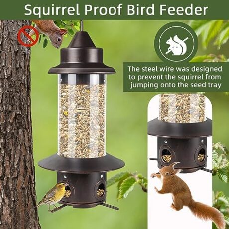 Squirrel Proof Bird Feeders for Outside:Outdoors Hanging Metal Tubes Bird Feeding 5LB Seeds Capacity Bird Feeders Heavy Duty 4 Feeding Ports Chew-Proof Wild Birds Feeder for Garden Yard Decoration