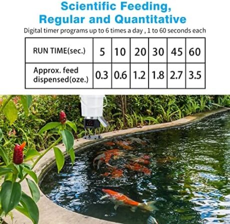4.5L Pond Fish Feeder, Automatic Fish Feeder for Pond, Timer High Capacity, Battery-Powered for Vacations & Hot or Cold Weather