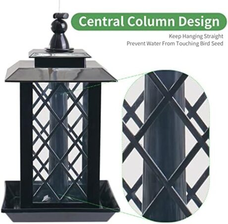 Vivace Large Bird Feeders, Hanging Bird Feeders for Outdoors, 3.2lb Capacity Lantern Wild Bird Feeders for Outside Hanging, Black