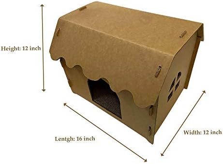 SVY Cozy Cat House with Scratcher Pad, Made of Corrugated Cardboard, Ideal for Cats & Kittens & Small Animals. 16″x12″x13″