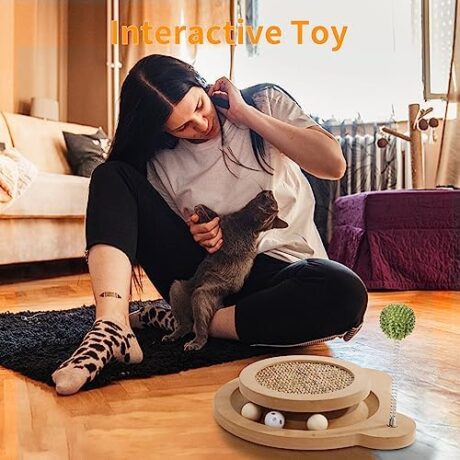 PETMAKER Interactive Cat Toy Rocking Activity Mat- Swing Playing Station with Sisal Scratching Area, Hanging Toy, Rolling Ball for Cats and Kittens
