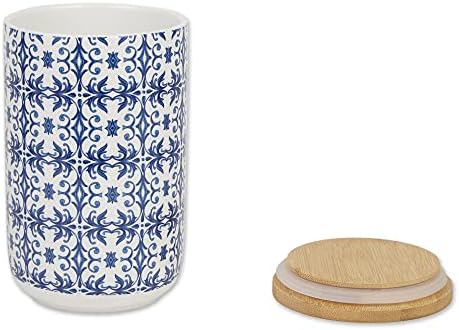 Bone Dry Ceramic Pet Treat Canister with Bamboo Lid, Dishwasher Safe, Countertop Storage, Keep Dog & Cat Treats Safe & Dry, 4×6.5, Blue Tile