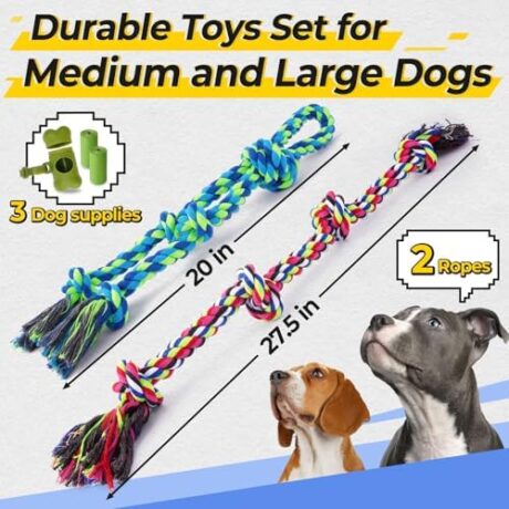 UPSKY Dog Rope Toys 2 Nearly Indestructible Dog Toys, Dog Toy for Medium to Large Breed, Dental Cleaning Chew Toys, Dog Tug Toy for Boredom, Dog Teething Toys, Dog Rope Toy for Aggressive Chewers