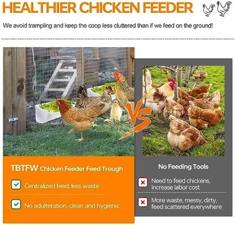 4 Pack Chicken Feeder Feed Trough with Clips Hanging Fence Feeders for Goat Duck Sheeple Piglets Horse (White 4pcs Set)