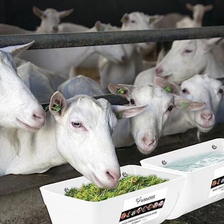 Cedilis 4 Pack Hanging Duck Feeder, Chicken Fence Feed Trough with Clips, Poultry Livestock Food Water Feeding Container for Goat, Goose, Rabbits, Sheep, Each Feeder 2.5 Quarts