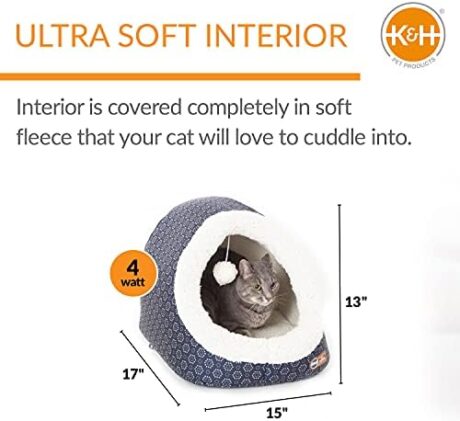 K&H Pet Products Thermo-Pet Cave Heated Cat Bed for Large Cats, Indoor Heated Pet Bed for Dogs & Cats, Covered Cave Pet Tent, Collapsible, Machine Washable, Safety Listed – 17 X 15 X 13in Gray