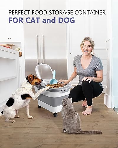 ANVS Airtight Collapsible Pet Food Container With Casters, Scoop and Small Container – Keeps Up To 20lbs Dry Dog Food Fresh (Grey)