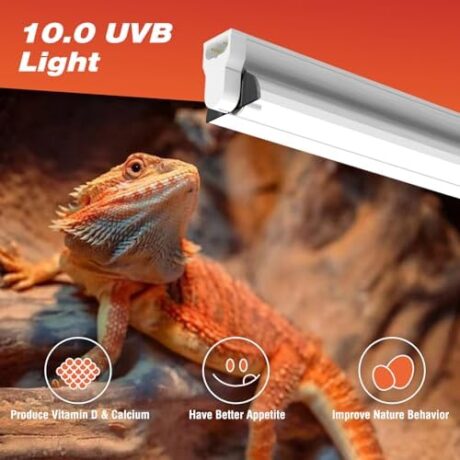 8W T5 HO UVB Reptile Light Fixture Combo Kit 12Inch Reptile Habitat Lighting Connectable Terrarium Hood with Desert 10.0 UVB T5 Lamp Bulb