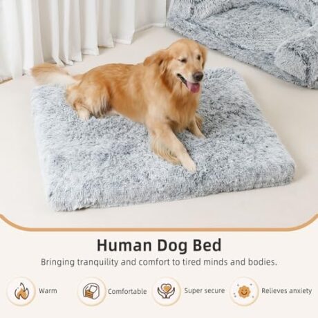 Human Dog Bed, 45″x30″x12″ Plush Combo Orthopedic Pad, Washable Faux Fur Bed Cover Fits People and Pets, Adults Doze Off, Napping – Rectangle – Grey