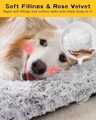 POCBLUE Deluxe Washable XL Dog Bed Dog Crate Mat 41 inch Comfy Fluffy Kennel Pad Anti-Slip for Dogs Up to 90 lbs, 41″ x 27″, Grey