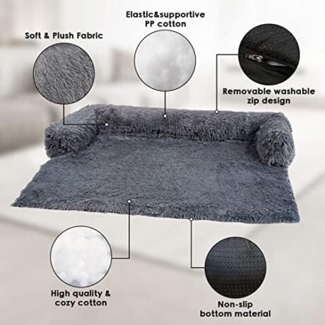 Large Washable Removable Calming Dog Bed,Fluffy Plush Dog Couch Bed,Couch Cover for Dogs with Dogs Landing Furniture Protector,Dog Beds for Large Dogs and Cats.(L(41x37x6),Dark Grey)