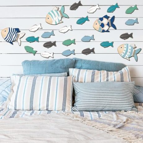 24 Pcs Wooden Fish Wall Decor Nautical Coastal Decorations Large 2 Size Christmas Coastal Hanging Wall Art Nursery Beach Lake House Decor for Home Bathroom Outdoor Decoration