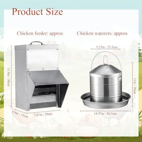 Mifoci Stainless Steel 2.4 Gallon Chicken Waterer and Galvanized Chicken Feeder 11.5lbs Chick Coop Feeder Poultry Feeder with Lid Weatherproof Poultry Food Dispenser Hanging Poultry Drinker for Duck