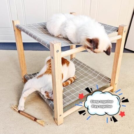 2 Layer Cat Hammock Bed for Indoor Cats, 17.0”×17.0” Big Size Cat Hammock, Pine Wood Elevated Cat Bed, Good for All Seasons(Grey)