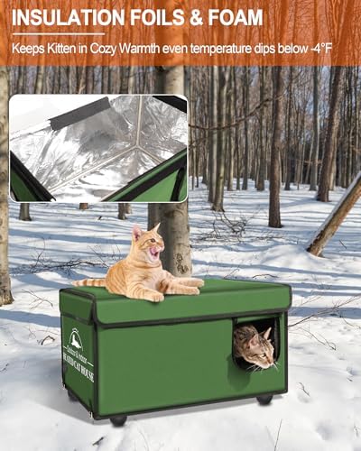 Heated Cat House for Outdoor Cat in Winter | Weatherproof Heated Shelter Kitty Bed with Pet Heating Pad | Waterproof & Elevated & Insulated Feral House | Warm Home for Outside Stray Barn