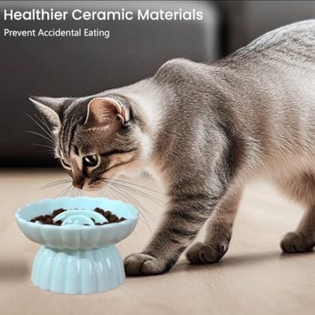 Ceramic Elevated Slow Feeder Cat and Small Dog Bowl,Anti Vomiting,Easy to Clean,Spill-Proof & Anti-Tipping Raised Pet Bowl for Food (Green)