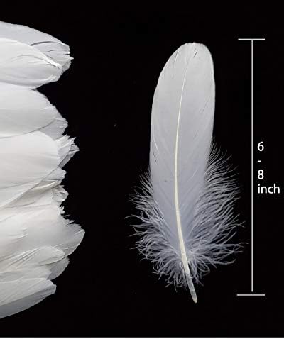 TommoT 100 Pcs 6-8 Inch Natural Large White Goose Feathers for Dream Catcher Crafts and Clothing Decoration