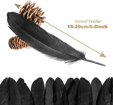 UNEEDE 120Pcs 6-8 Inch Black Feathers, Natural Goose Feathers for DIY Halloween Decorations, Halloween Decoration,Cosplay, Gothic Costumes & Crafts