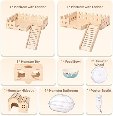 BUCATSTATE Hamster Cage Large Includes Accessories, Free Water Bottle, Exercise Wheel, Food Dish & Hamster Hideout Rat Cage and Habitats for Gerbil, Mice, Syrian Dwarf Hamster (24.4″ L * 13.8″ W)