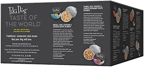 Tiki Dog Taste of The World Whole Food, Variety Pack of Gourmet International Flavors in Broth, Culinary Inspired High Protein and Moisture Rich Superfoods Wet Dog Food, 3 Oz Cups, Pack of 10