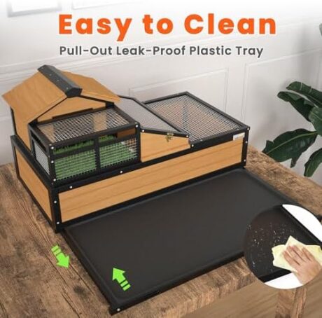 3-Room Large Tortoise Habitat with Pull-Out Tray, Wooden Tortoise Enclosure Indoor & Outdoor with Ramp, Grass Mat, Openable Roof, Luxurious Reptile Enclosure for Small Animals, Yellow