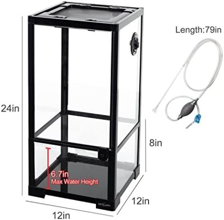 REPTIZOO 15 Gallon Full Glass Reptile Terrarium 12″ x 12″ x 24″ Knock-Down Glass Tank and Siphon Gravel Cleaner Set, Small Habitat for Reptile Chameleon, Tree Frogs, Arboreal Geckos,Lizard